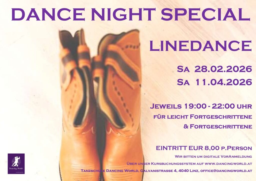 in der Tanzschule Dancing World in Linz:Für alle Freunde des Tango Argentinos haben wir am SA 07.03.2026 ab 20 Uhr wieder Übungsmöglichkeit.